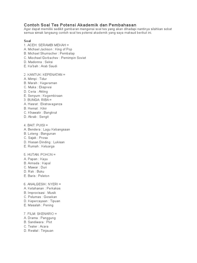 Download soal dan pembahasan tes potensi akademik pdf.inilah pembahasan selengkapnya mengenai contoh soal tes masuk man insan cendekia jambi. Download soal dan pembahasan spmb pkn stan bimbel pkn. 20200923 contoh soal tes potensi akademik dan pembahasan 6nger377p2lv soal tes potensi akademik masuk smp favorit pdf les privat surabaya 0856 313 4400 wa tes potensi akademik tpa download gratis tes potensi. Tidak ada postingan yang cocok dengan kueri: Home » posts filed under hasil penelusuran untuk download soal tpa dan pembahasan gratis pdf.