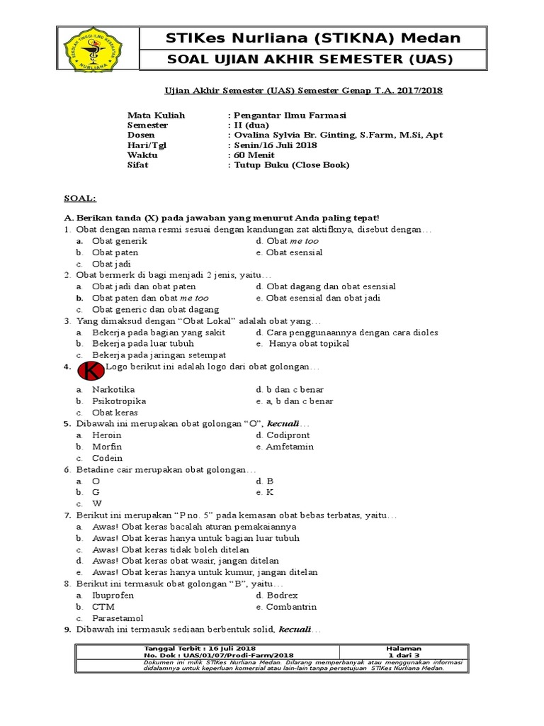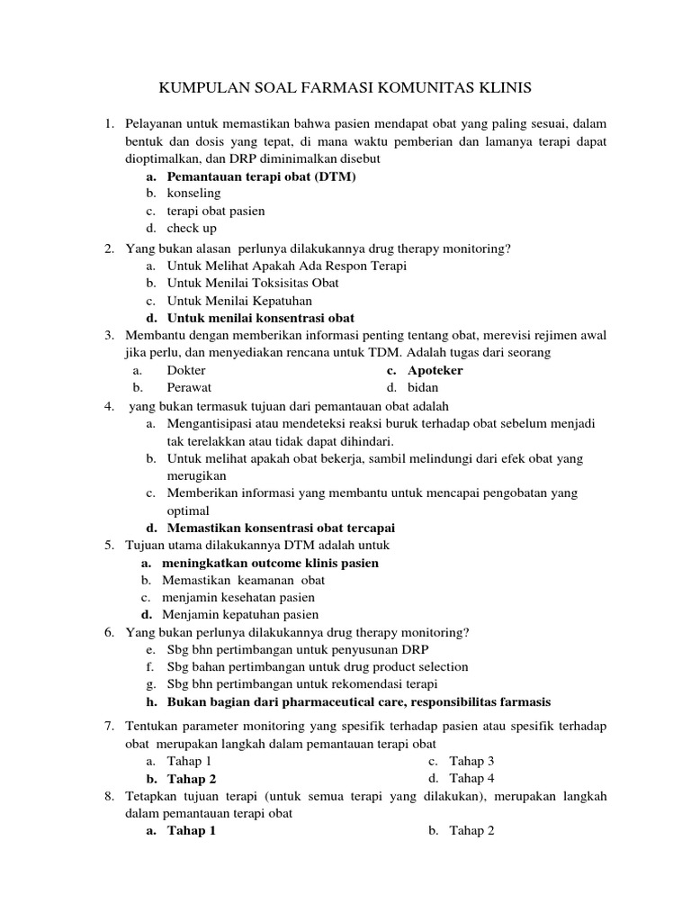 Jul 09, 2020 · kumpulan soal farmasi dan jawabannya smk.